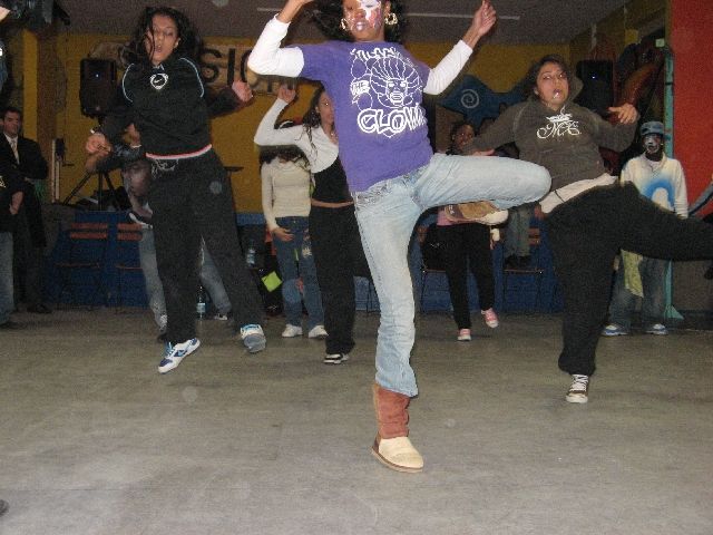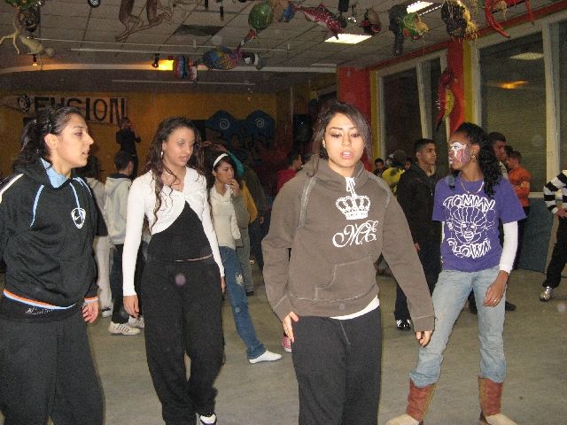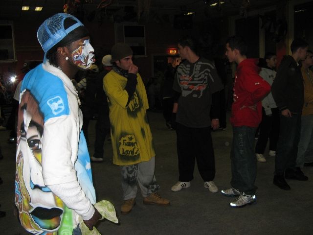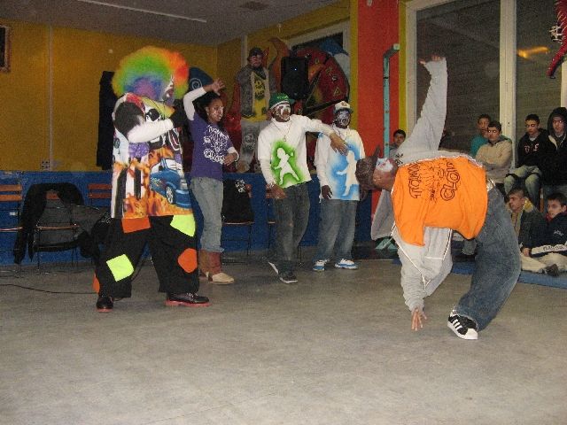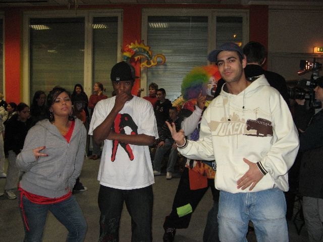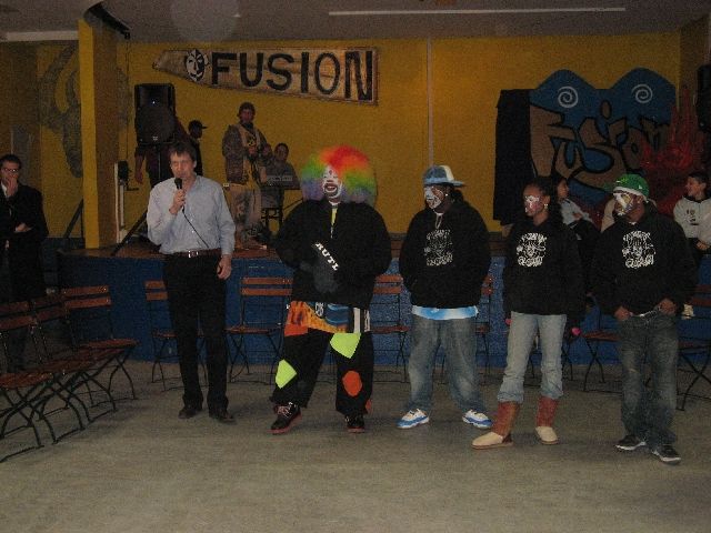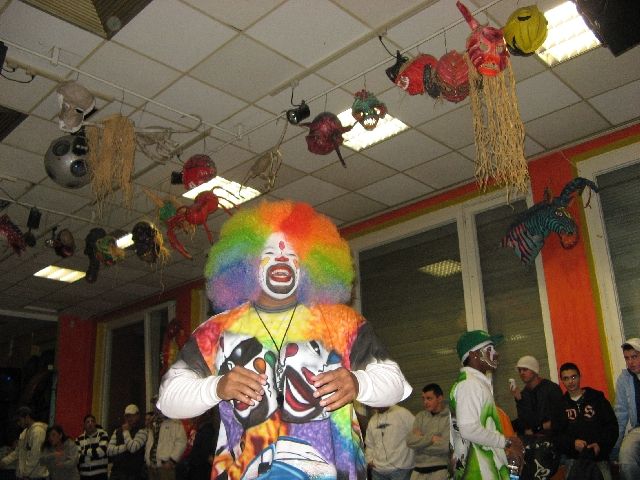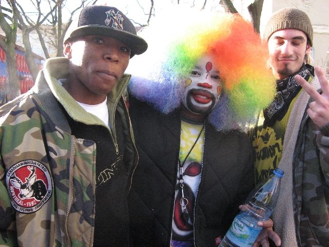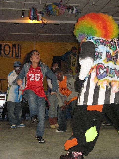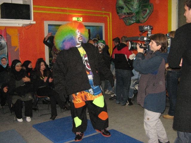 "Tommy the Clown" - vielen aus dem Film 'Rize' bekannt - kam heute in die Rütlistraße, um Schülerinnen und Schülern der Rütli-Oberschule seine Geschichte zu erzählen und mit ihnen zu tanzen. Er hat in East Los Angeles, den stark benachteiligten schwarzen Stadtvierteln, die Clowning-Bewegung ins Leben gerufen und dadurch vielen Kindern und Jugendlichen einen Weg unabhängig von Gangs und Gewalt aufgezeigt. Die ganze Bewegung beruht auf Hip Hop und den sehr energiereichen Tanzstilen Clowning & Krumping. Inzwischen haben sich diese Tanzstile weltweit verbreitet und auch unsere Kinder und Jugendlichen sind begeisterte Anhänger und trainieren unablässig. So war die Aufregung groß, als Tommy und vier seiner Tänzerinnen und Tänzer, die im gleichen Alter wie die Schüler sind, in der MANEGE ankamen. Und da das Tanzen bei allem das Wichtigste ist, gab es einen kleinen Workshop und eine Battle und alle Tanzbegeisterten kamen auf ihre Kosten.